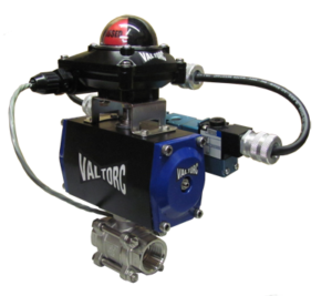Valtorc's new actuated dribble control ball valve series is constructed with a high quality stainless steel ball valve, spring return/double acting pneumatic actuator and two (2x) Valtorc solenoid valves. Two voltage sources power solenoid valves while the spring return actuator supplies the package with a clean air source.