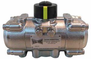 Stainless steel pneumatic actuators available in spring return or double acting configurations. Heavy duty pinion, one piece stainless alloy shafts. ISO 5211 mounting with heavy duty springs. Easy conversion from double acting to a spring return actuator. Made from an investment cast body, heavy duty bearings and NAMUR slotted shafts.